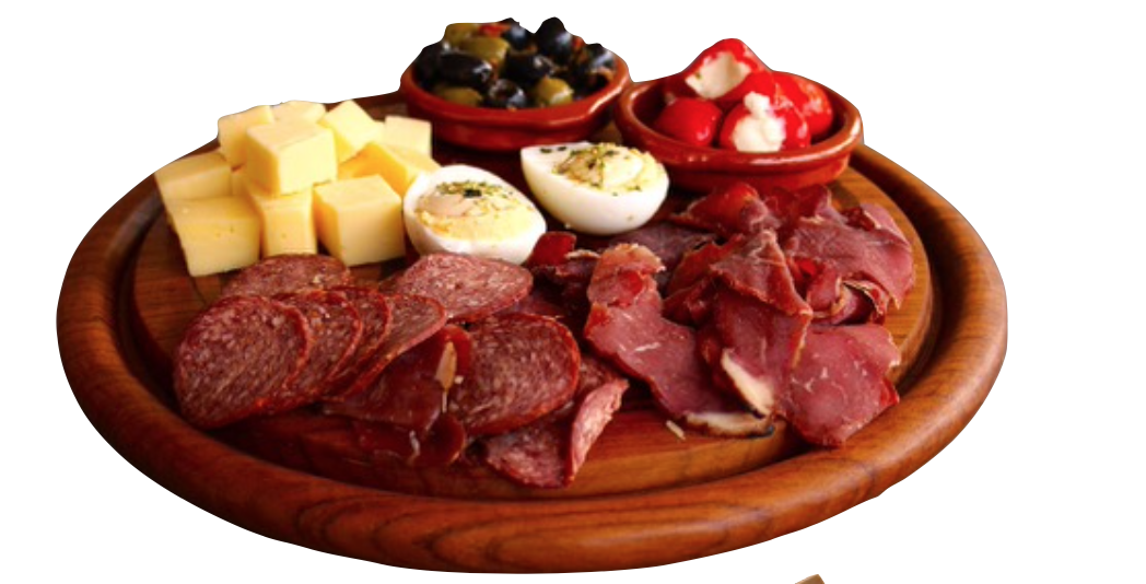 Gedroogd vlees plankje met kaas, olijven en papadews € 12,50